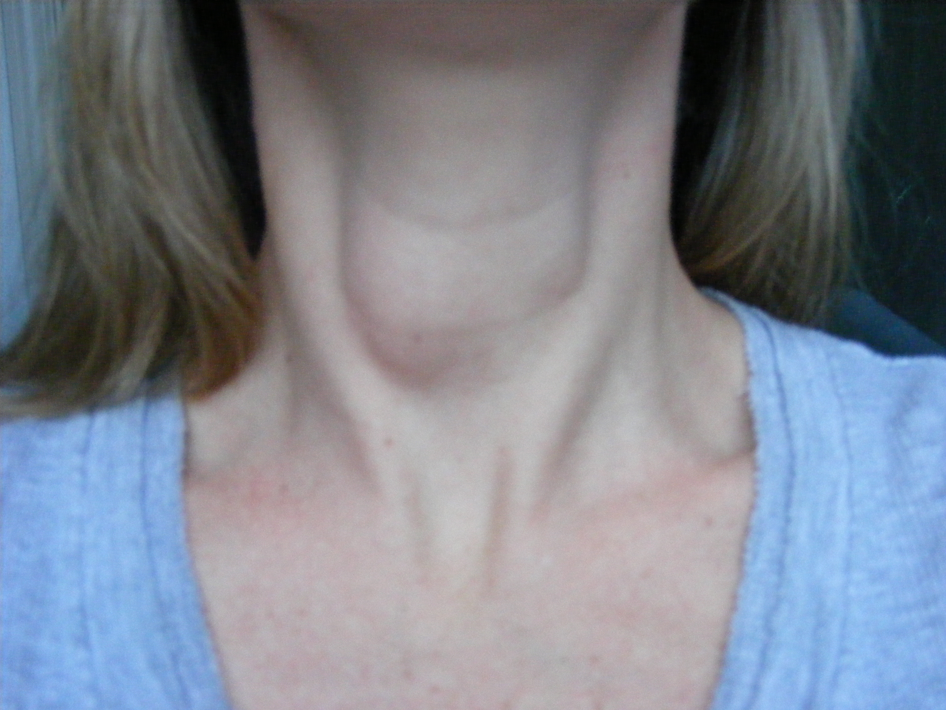 I have had an itch under my jaw, deep in the tissue of my neck for years. In 2009, I decided to mention it to a doctor one day and, although she didn’t feel anything abnormal in the area of the itch, she did casually say, “You do have a lump on your thyroid, though.” I had a thyroid nuclear test done and a radioactive iodine uptake test which showed two toxic multinodular goiters.”Toxic”, meaning thyroid hormone was being produced at an increased rate, which is why my thyroid stimulating hormone (TSH) tested so low. “Multinodular” because it was a late-stage goiter, meaning it had been around for a while and had a chance to grow and become lumpy. In my case, I had been hyperthyroid for at least 7 years ~ my first abnormal TSH result was in 2002, but my doctors never pursued it and I didn’t know enough to insist.