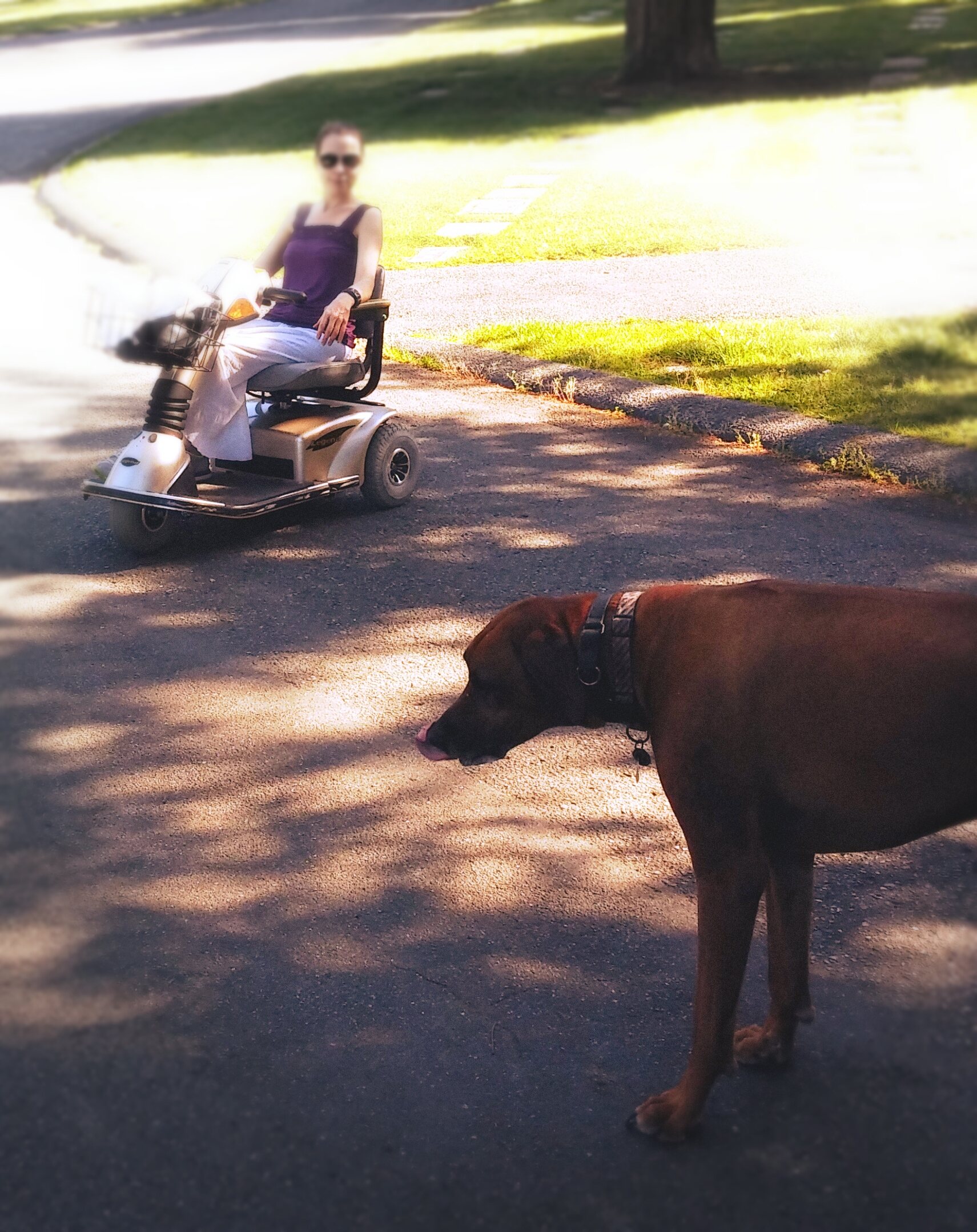 It’s chilly again here and one of my dogs broke his toe chasing squirrels, so we’re all stuck back in the house being lumps on logs. I did manage to make it to the cemetery on my mobility scooter on that last hot day (thank you, husband, for making that happen). It was glorious.