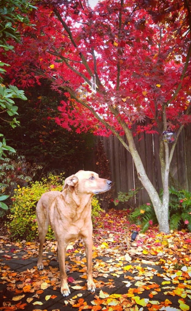 Riley had the most free, life-loving spirit of any dog we’ve ever known. If we let him off-leash, he was gone — he wanted to explore every inch of this world. I always smile remembering when we took him to a lure coursing gathering for ridgebacks. All of these hounds, focused and serious, torpedoing after the lure in a big semi-circle, not taking their eyes off it. And then Riley… he would chase it about a third of the way and then skip away from the course in a joyous arc, running free into the field beyond because WOW LOOK AT THOSE TREES I SMELL A SQUIRREL WHAT’S THAT CAR OVER THERE SO MUCH GRASS TO PEE ON… I will always laugh-cry thinking about Riley smiling, carefree, freedom-skipping away to his own drum, oblivious to our calls, in between the trained, studious ridgebacks’ runs.