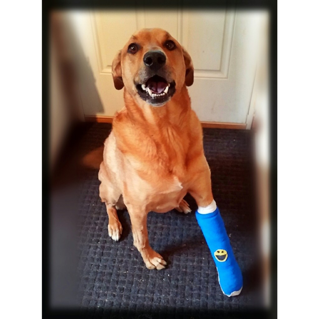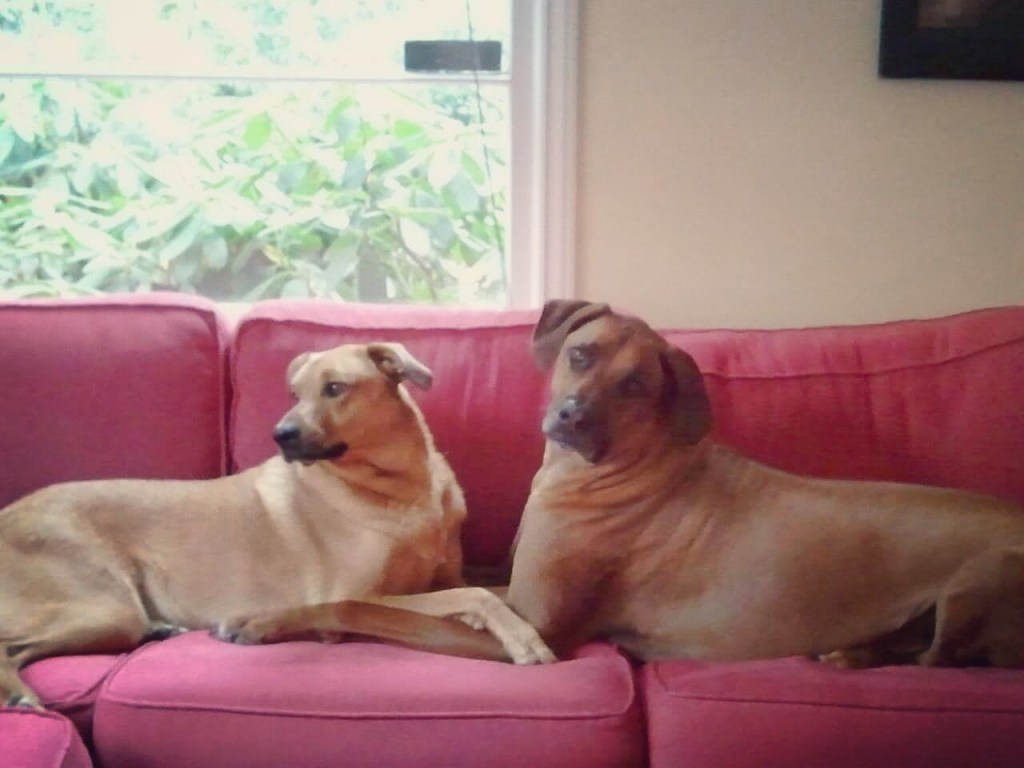 He became Riley to us — “Little Guy” at 65 lbs because Bowie was such a big guy — but he continued to rally. He almost died of giardia at 3 years old. He broke a toe chasing squirrels and dealt with a cast for months and eventually an amputation. He had two dental surgeries and bounced back with no complaints. He was impossibly fast — he’d run behind the car on the beach like a greyhound, even as his arthritis got progressively worse. He limped more and more over the years, but was always thrilled to go on walks, chase a ball and battle it out with the dangerous heft (and nails) (and tails) of our Rhodesian ridgebacks. His resilience was inspiring, but we had to rein him in and save him from himself.