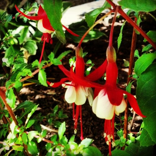 Our fairly new, fancy Kenmore refrigerator (which isย about three times the size of the one I had growing up (which is still alive and kicking) and, being one of my first major kitchen appliance purchases, I researched very well, even going so far as to subscribe to Consumer Reports to read up on it) has broken for the third time in a month. Today, after the repairman’s third visit, we opened the fridge door and could hear the motor blade whacking off something, so he’s going to have to come back a fourth time. While our kitchen is a repair shop, I am sequestered in the garden with the dogs, cooking breakfast by camp stove and typing this post under a “parasol”. ๐